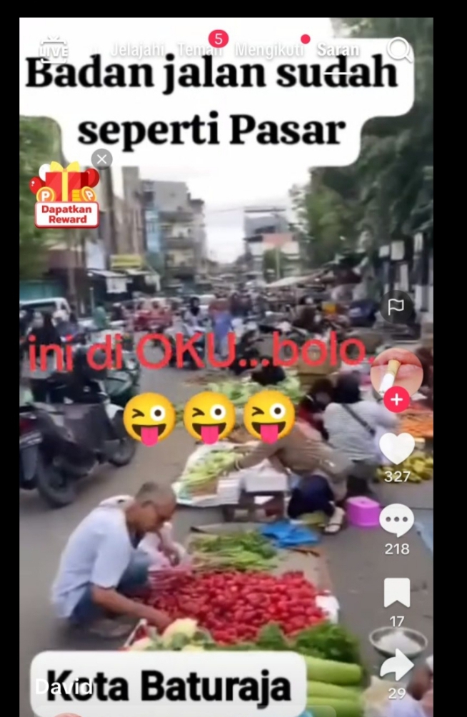 ‎Kondisi “anarki” tata kota ini mencuat ke publik setelah diunggah oleh akun TikTok @agusdavidson3 pada Kamis, 25 Desember 2025. Dalam video berjudul “Badan Jalan Sudah Seperti Pasar Kota Baturaja”, terlihat jelas bagaimana badan jalan telah berubah fungsi total.