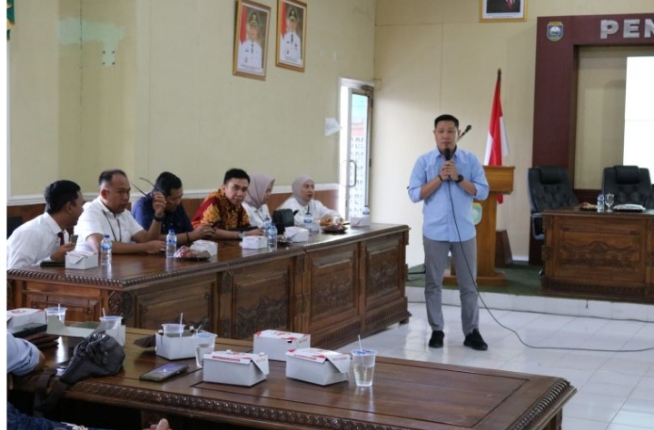 Hendri Dunan, SH, Kasi Intelijen pada Kejaksaan Negeri OKU, memberikan sosialisasi mengenai aplikasi Jaga Desa. Aplikasi digital ini dikembangkan oleh Kejaksaan Republik Indonesia untuk membantu mengoptimalkan pengelolaan dana desa.