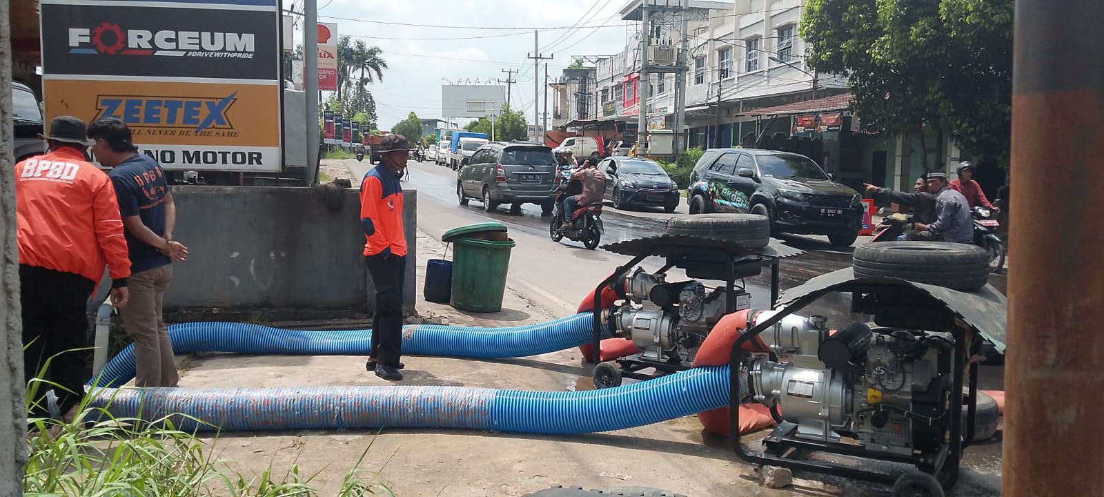 ”Dititik yang tersumbat kita melakukan upaya penyedotan, setiap ada genangan BPBD menurunkan personil, 3 mesin alat sedot dan1 mobil tanki untuk di lakukan